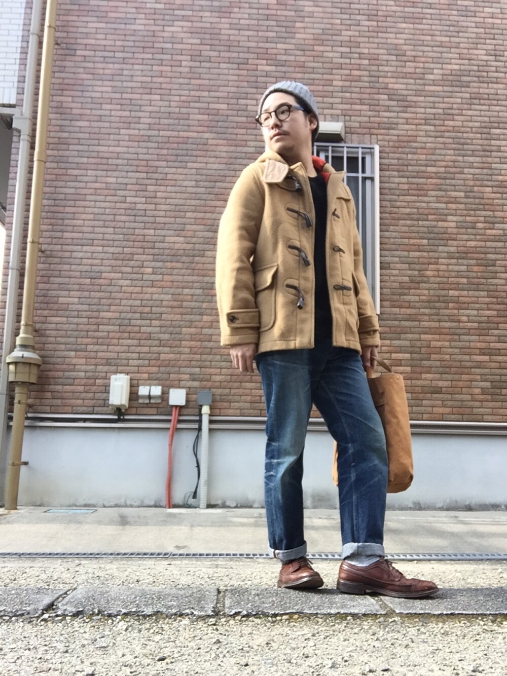 One World!! こんにちは! 世界は一つ 普段は服の持つ背景とか国を 気にしてコーデを作ってますが 今日はミックス! というよりは何も考えなかったと 言ったらいいでしょーか London Traditionのダッフルコート! ダッフルの時は首元はクルーネックで いきたいんです。なぜか。 だから少し寒い。 (マフラーはバッグに入っている…) キャメルって難しいですよね。 なんだろ、割と取り入れやすいから 一時流行ったから街はキャメルだらけ。 差をつけるのって大変。 これから同期と食べ歩き 古着屋まわります。
