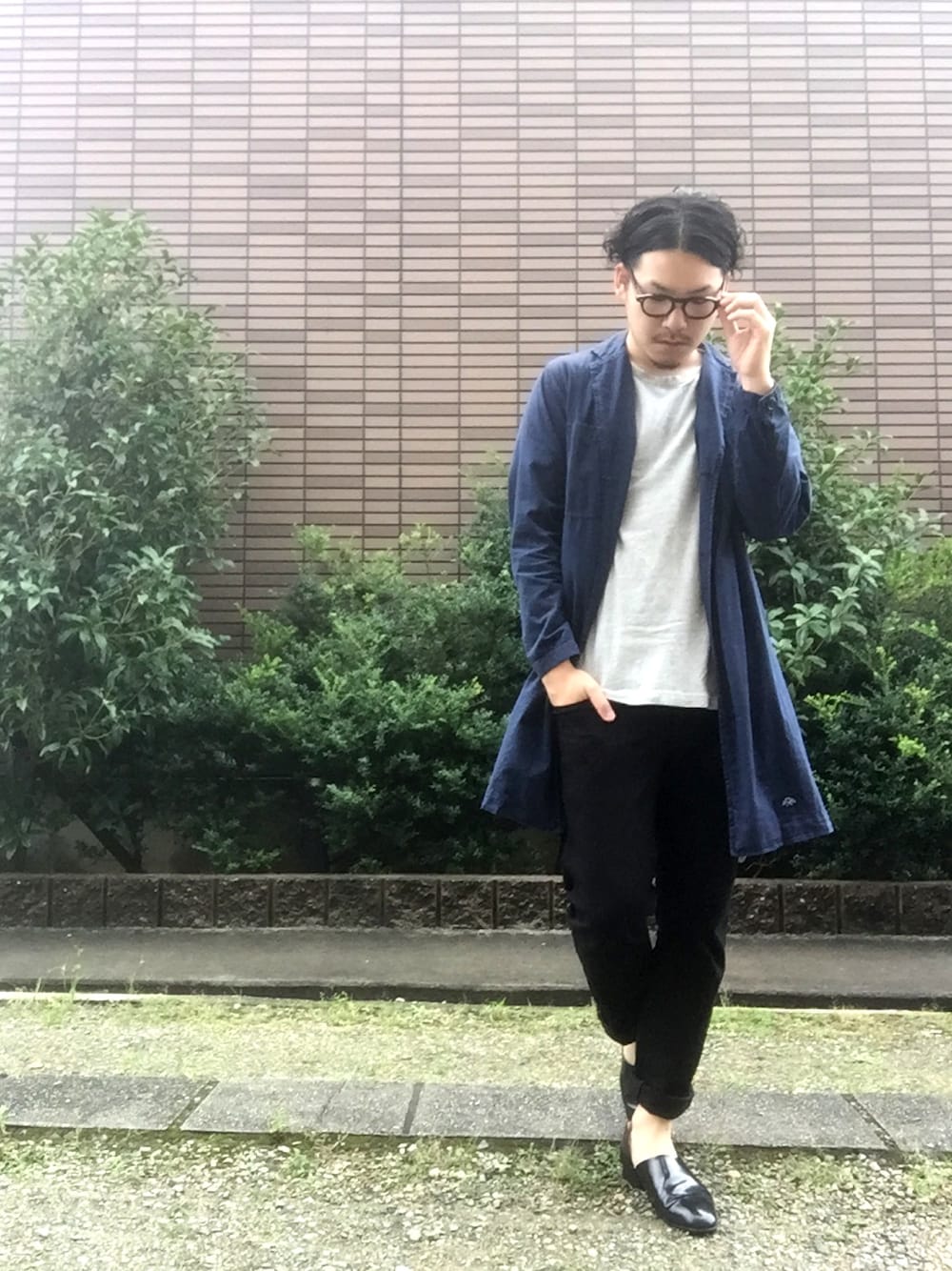 enomonのその他アウター「BLUE DE PANAME: エクスクルーシブ ショップコート」を使ったコーディネート
