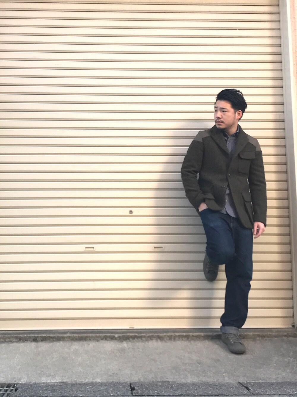 enomonのテーラードジャケット「MALLORY JACKET CLASSICS OLIVE」を使ったコーディネート