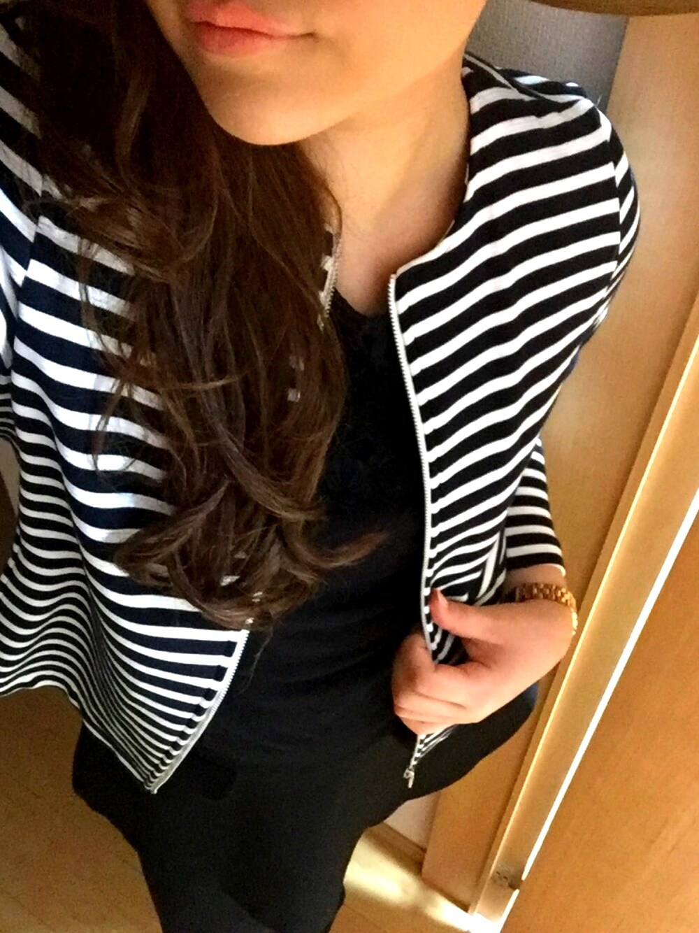 🌴Mのジャケット/アウター「WOMEN ソフトジャージーノーカラージャケット(ボーダー)」を使ったコーディネート