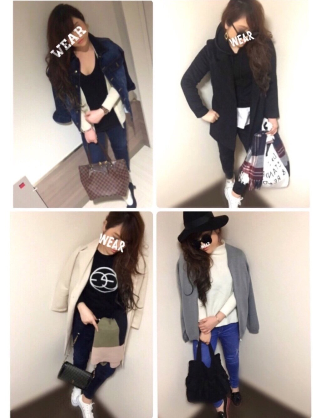 連続更新すみません😂🙏 前回のも見て下さると嬉しいデス (。-ܫ-。)ムフッ♥ 今帰宅からのこれから ご飯食べにコーデと やっぱり辞めたコーデと 記録の為に載せまぁす🌟 先輩とのご飯なので 上の段のデニデニでシンプルに🙈 インナーにはカーデ挟みです♬ 靴下と色合わせしてみましたとさ💓 外撮りナウ(笑)←気付かれてる? 変わらない?プー!(*≧m≦)=3 あと下の段の左のエゴイストさんの ニット😍🙌 お初です🌟 これはかなり好きなブランドなので ロゴ入りが特に大好き💓 スカート合わせもクール👍✨ では帰ってから ガッツリ履歴見て お邪魔します💓 仲良くして下さってる方々 新しい方々も 素敵な夜をお過ごし下さい ★o:+゚+:o☆o:+゚+:o★ Happy Smile😌✨ またお一人お一人と 絡めること楽しみに してますね♡ ☆ではでは★