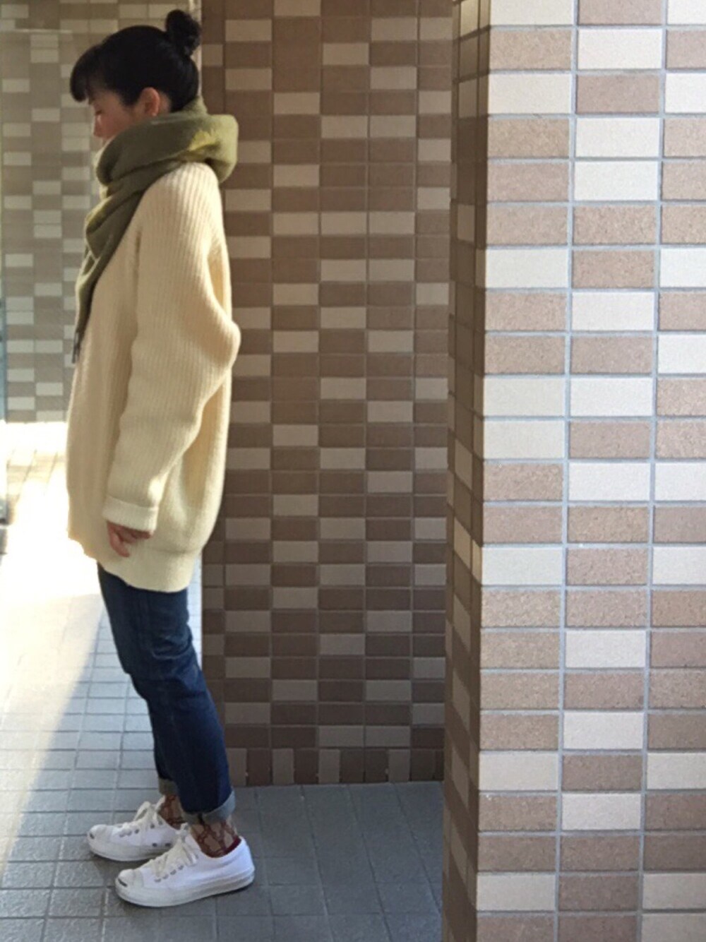 enonoのストール/ショール「KLIPPAN × mina perhonen イエロー×グレー」を使ったコーディネート
