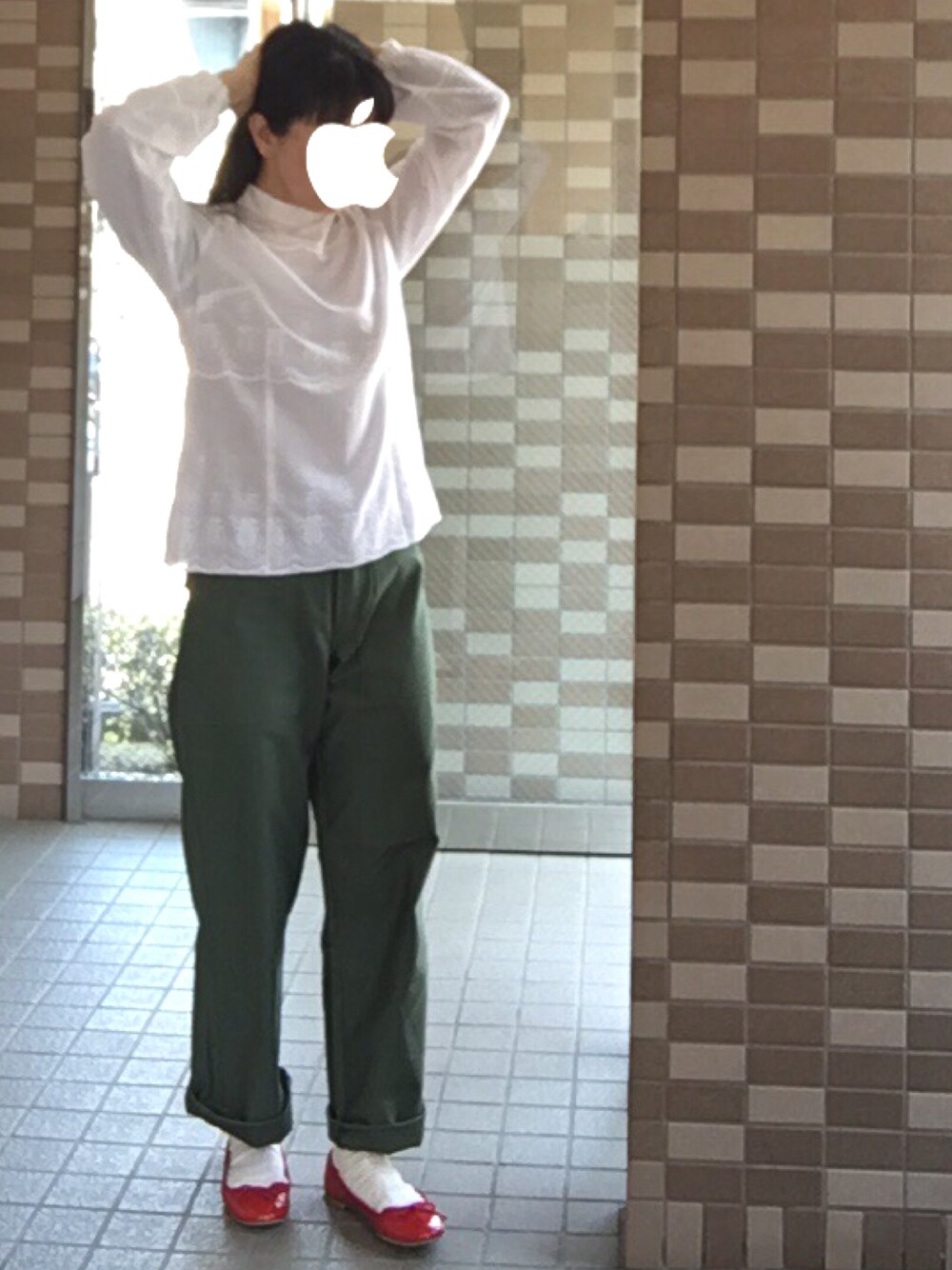 ミリタリー×レース×赤バレエシューズ の組み合わせ 好きです