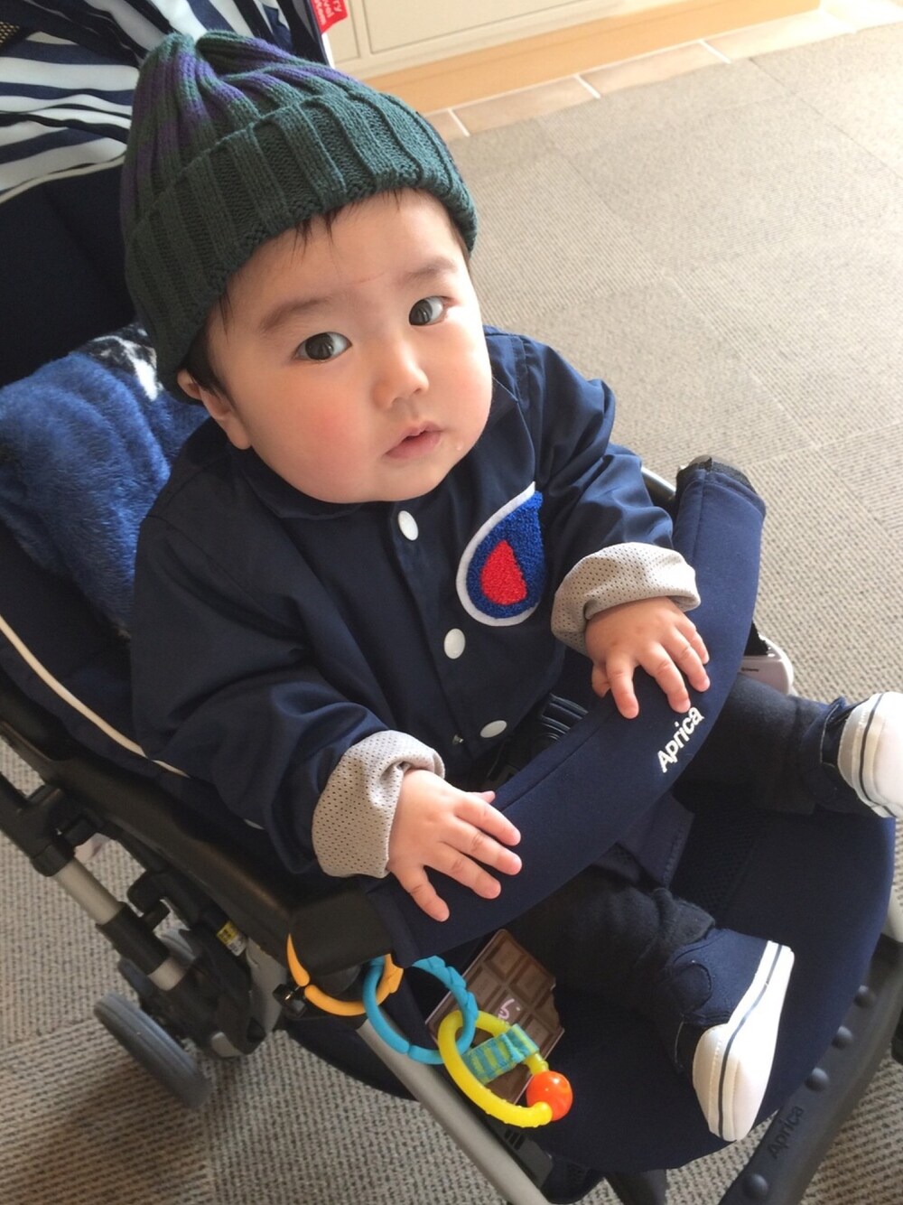 10ヵ月の時の息子♡ はぁー可愛い♡ 親バカ。。はい。🙏🙇♀️🙇♀️🙇♀️ 10ヵ月の子に90cmのアウター。 大きすぎて袖…曲げ曲げ。 今、ピッタリくらいかな〜。 着せるの楽しみ😊