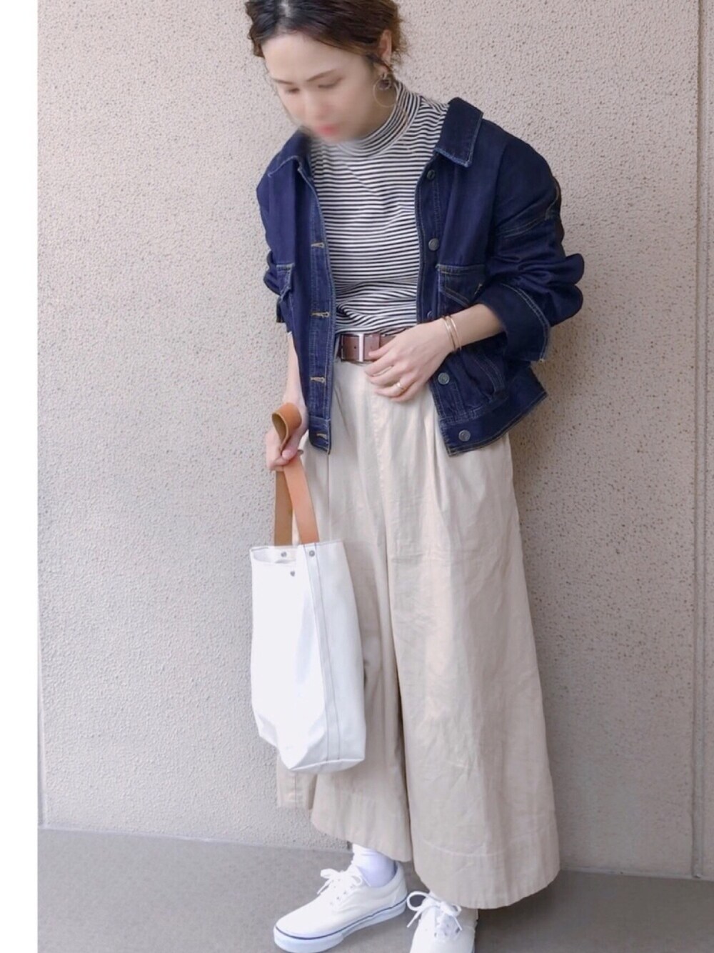 細ボーダー×ワイドパンツ 白い靴下に白い靴 春らしく🌸爽やかに 小窓は…📸 ドクターイエロー💛💛💛