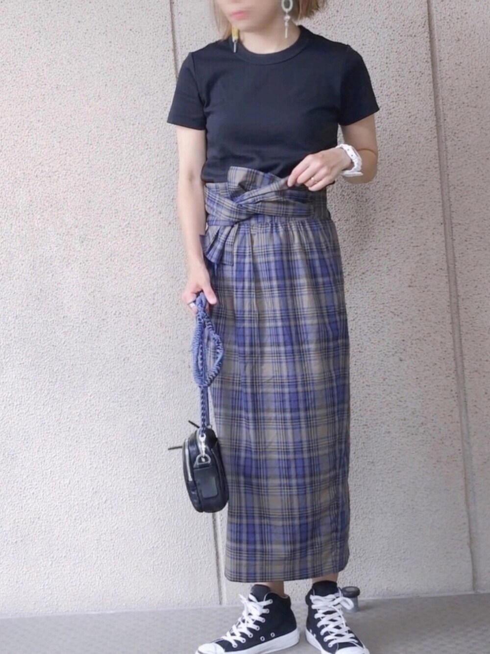 マドラスチェックスカート♡ ウエストのリボンがお可愛のやつ¨̮⑅* ぽっこりお腹を隠せるナイスitem👏👏🙆♀️ トップスが黒だと秋っぽい感じもするけど… 気にしなーーい🤪 ユニクロのクールネックT黒も追加しました。 ☆━━━━━━━━━━━━━━━━━━━☆ いつもいいね、ありがとうございます¨̮♡