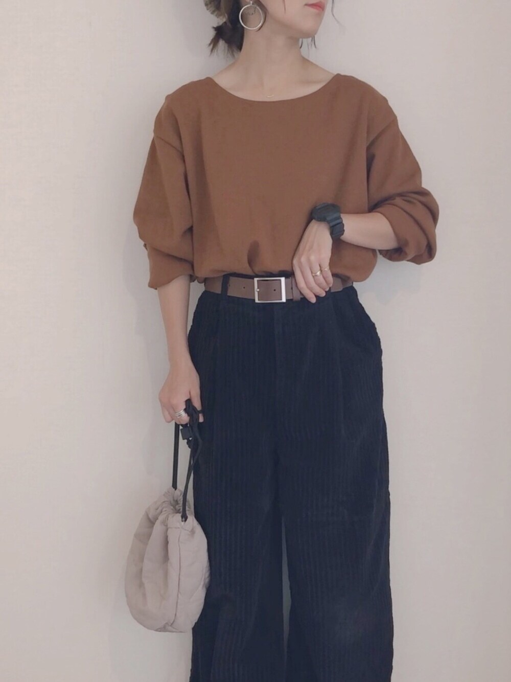 ブラウン×ブラック メンズトップスがゆるっとでいい感じ🖤 コーデュロイパンツこれから大活躍なやつ。 ☆━━━━━━━━━━━━━━━━━━━☆ 覗いて頂き、 いいね、save、コメント、フォロー、、 ありがとうございます⌣̈⃝♡⌣̈⃝♡