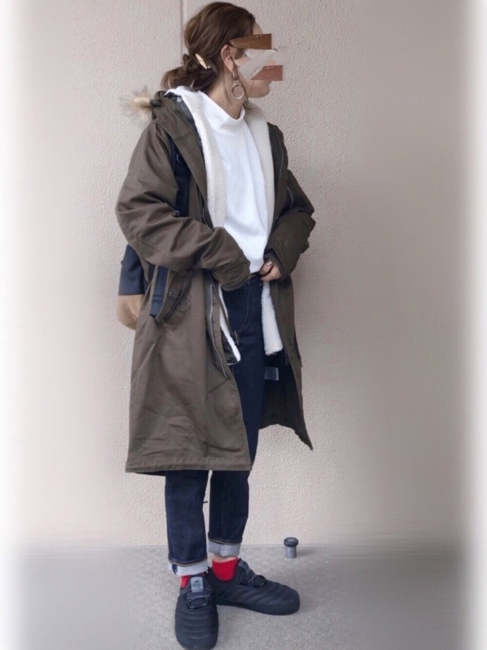 𝚜𝚊𝚢𝚊のモッズコート「ミリタリーツイル 全面裏ボア仕様 ロングモッズコート」を使ったコーディネート
