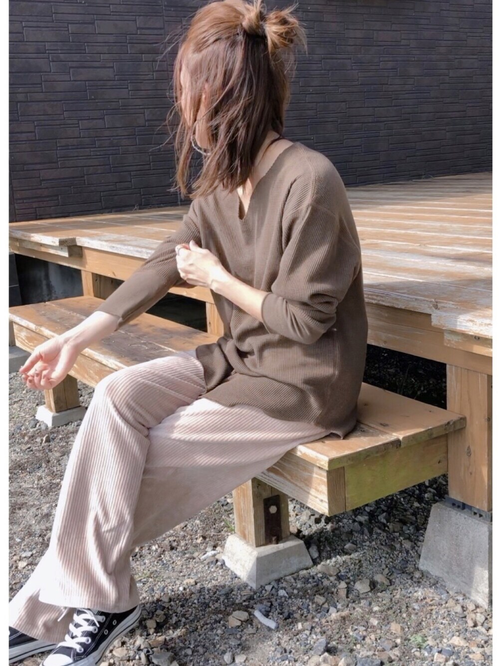 𝚜𝚊𝚢𝚊のTシャツ/カットソー「made in standard/メイドインスタンダード Vネック サーマルプルオーバー」を使ったコーディネート