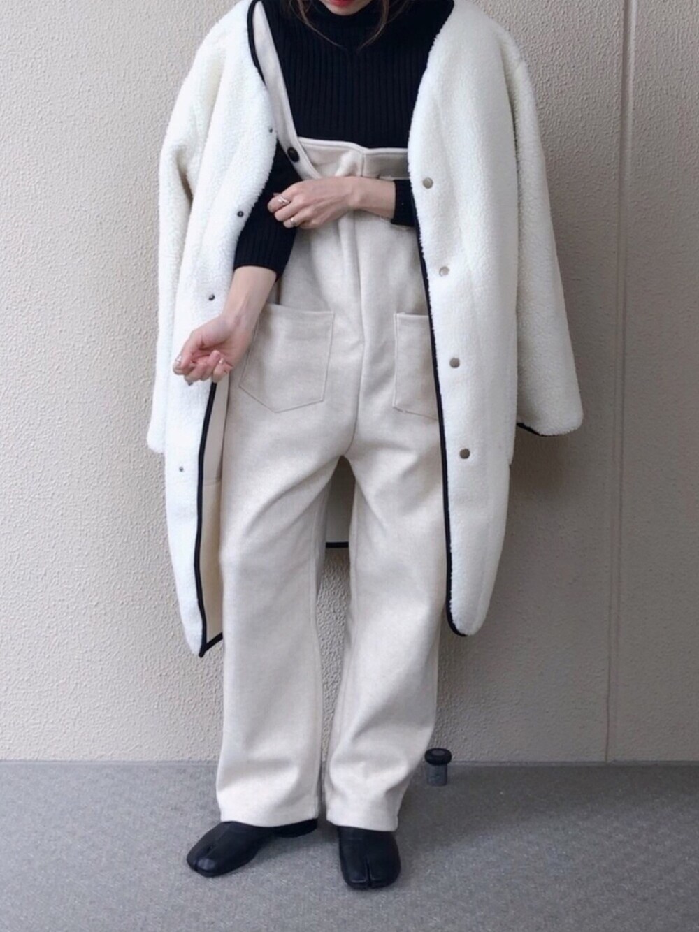 #アウター着回しチャレンジ (ボアジャケット②) 最近サロペ熱上昇中🔥👵🏻🔥 子どもっぽくなりすぎないように⚠️ 覗いて頂きありがとうございました| ‹:)~❁ Instagram☞saya_e__wear