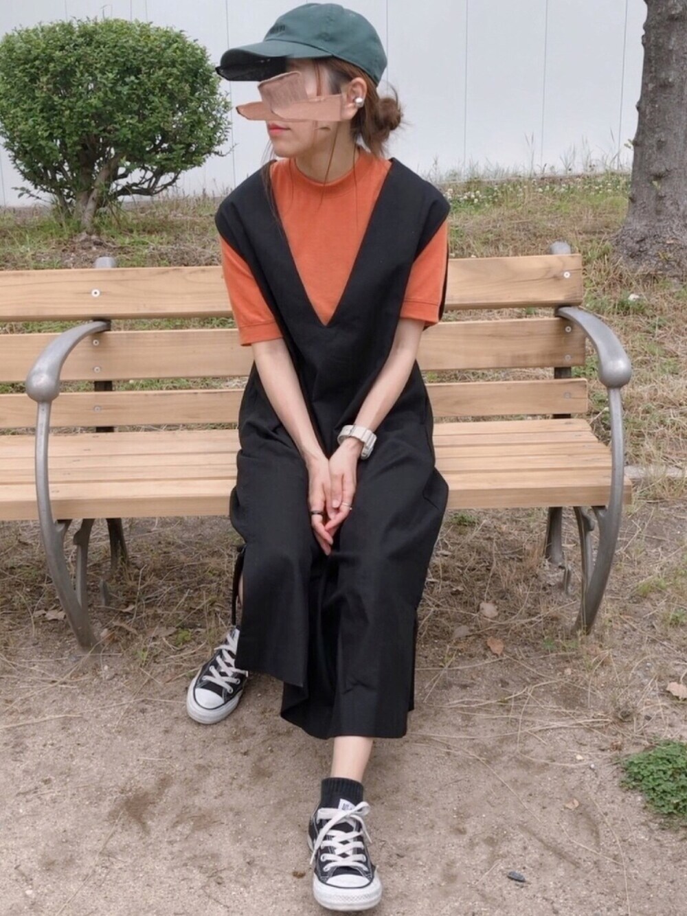 【Nora Lily】 オーバーホールワンピース//ブラック ざっくりとしたV字がいい感じ。 サイドのジップも可愛いやーつ。 おみかんコーデ🍊 ⋆ ⋆ 覗いて頂きありがとうございました。 Instagram▶▶saya_e__wear
