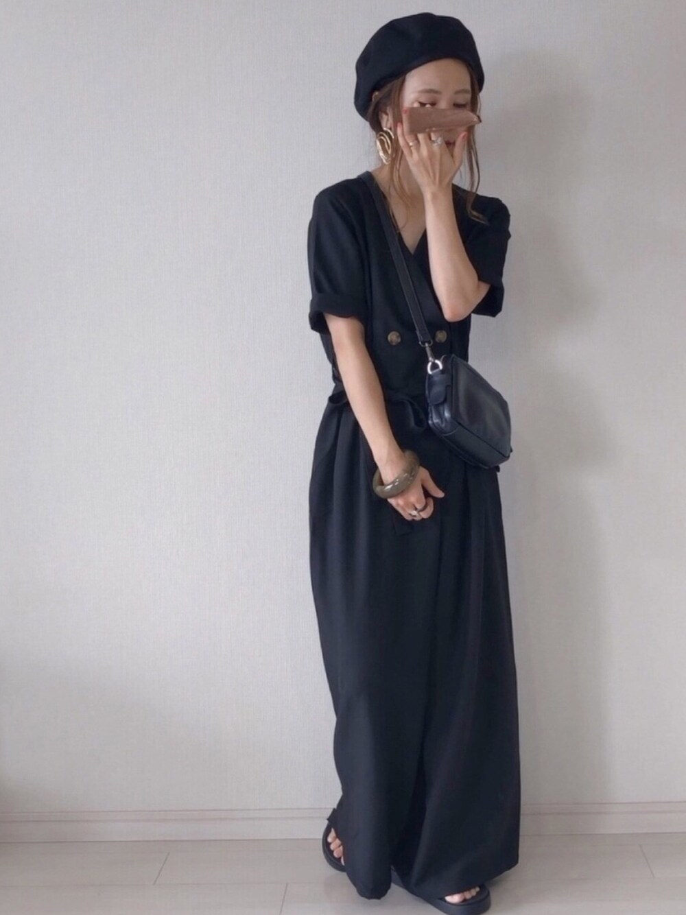 #夏のオールブラックコーデ🌚 ⋆ ⋆ 【CORNERS】 ラップ風オールインワン これはいい。 普段使いもちょっとした参観とかにもいいと思われます♡ おすすめです𓂃 𓈒𓏸◌ ____✍︎ 𝑇ℎ𝑎𝑛𝑘𝑠♡ Instagram➣➣saya_e__wear