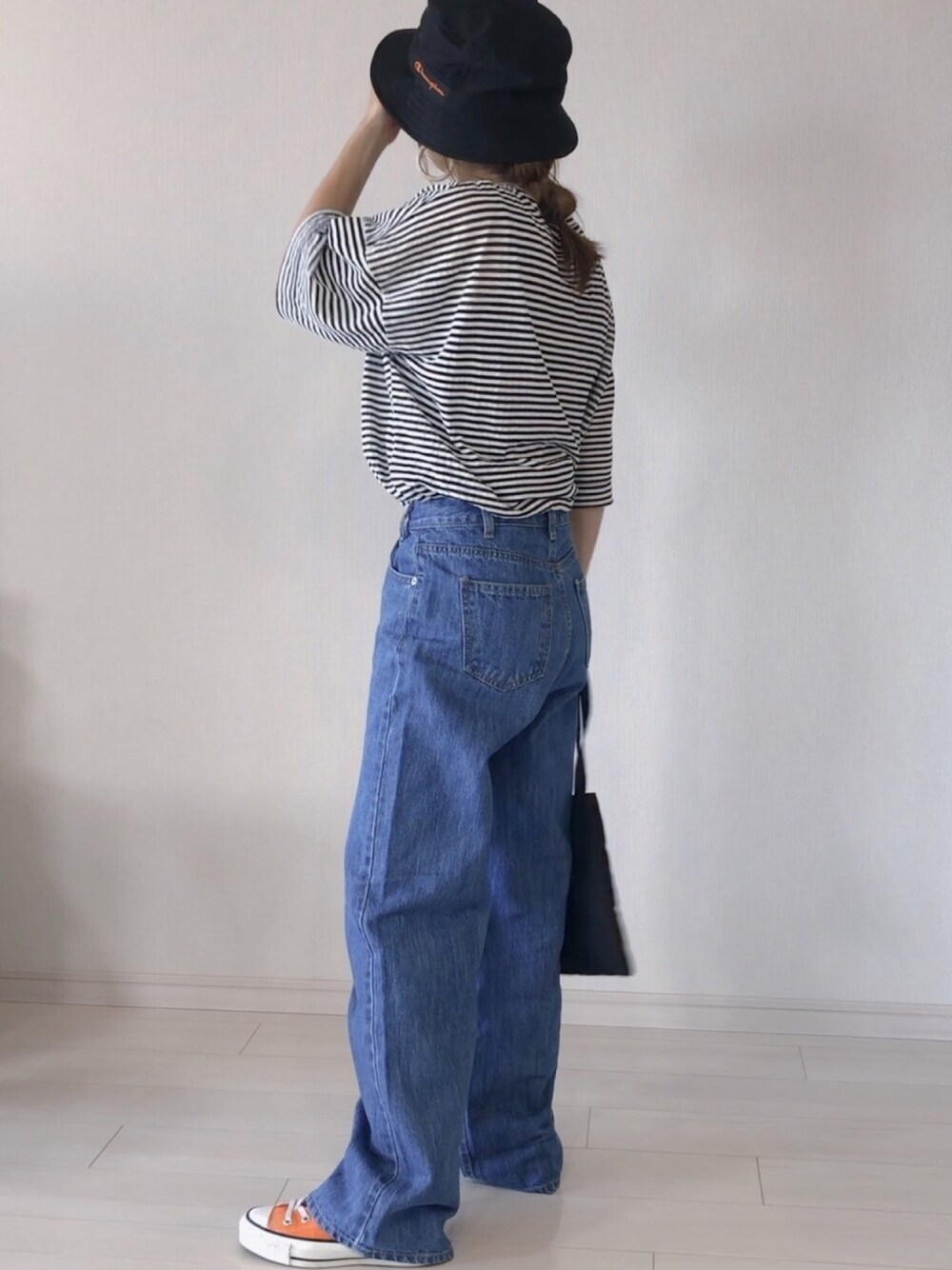 𝚜𝚊𝚢𝚊のデニムパンツ「[ZOZO単独 / シーズンレスアイテム]ハイウエストワイドデニムパンツ_短い丈ver」を使ったコーディネート