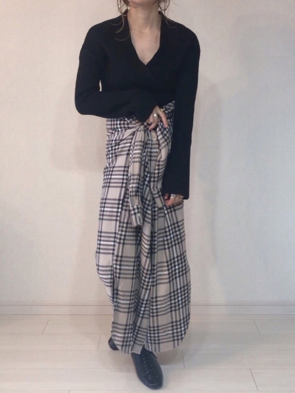 ちょっとあれんじ。 ____✍︎ 【Roomy's】 デコルテ見え、カシュクールニット デコルテがキレイに見えちゃうやつです。 本日ZOZOクーポン出てます︎︎︎︎☺︎ チェックシャツワンピを巻きスカート風に。 ____✍︎ 𝑇ℎ𝑎𝑛𝑘𝑠♡ Instagram➣➣saya_e__wear