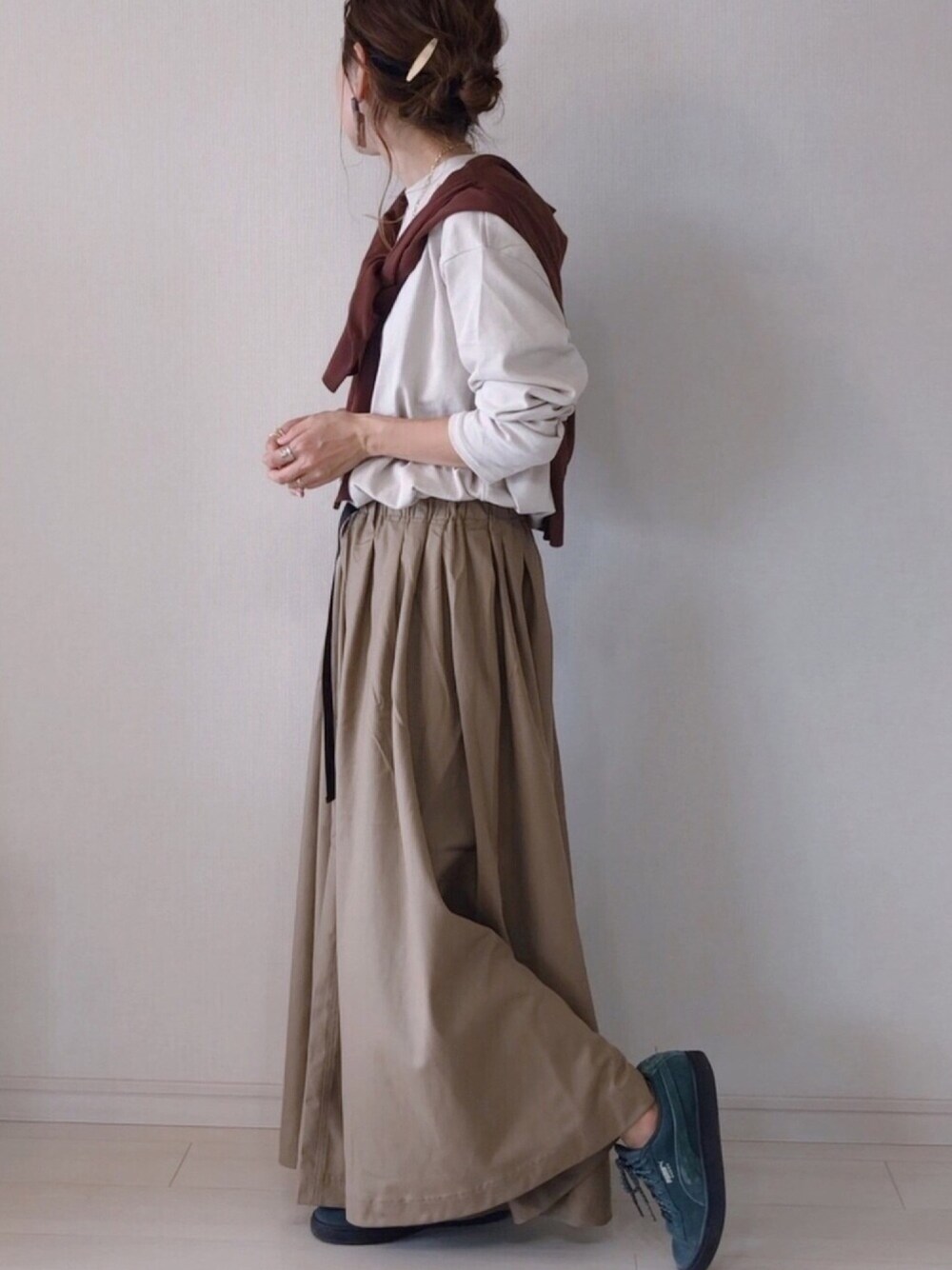 ワントーン。 もしくは、、 カフェオレ。 【OMNES】 ウェビングベルトギャバタックスカート おちの。 可愛ええ♡ ウエスト結構大きめですがベルトが着いてるので調整できます。 ____✍︎ 𝑇ℎ𝑎𝑛𝑘𝑠♡ Instagram➣➣saya_e__wear