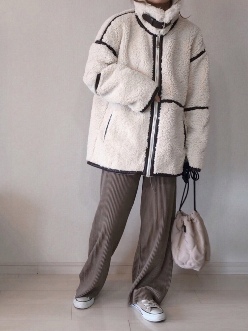 𝚜𝚊𝚢𝚊のブルゾン「【サイズ展開有】パイピングムートンボアジャケット / AUNT MARIE'S」を使ったコーディネート