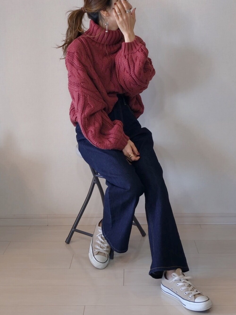 𝚜𝚊𝚢𝚊のニット/セーター「【ZOZO限定】オフタートルケーブルボリュームニット」を使ったコーディネート