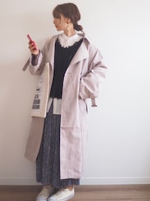𝚜𝚊𝚢𝚊のノーカラーコート「コットンキルティングロングコート」を使ったコーディネート