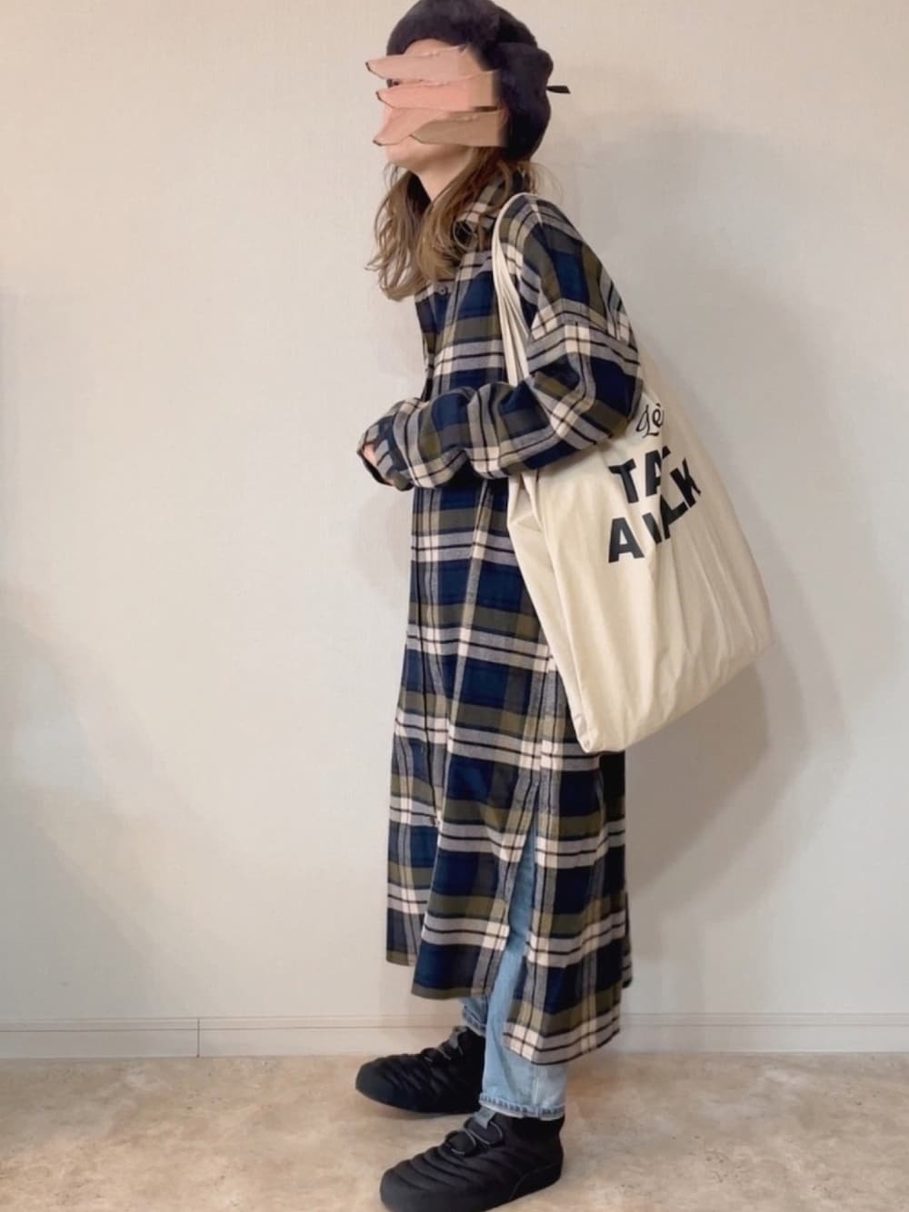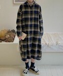 𝚜𝚊𝚢𝚊のシャツワンピース「チェック柄ロングシャツワンピース」を使ったコーディネート
