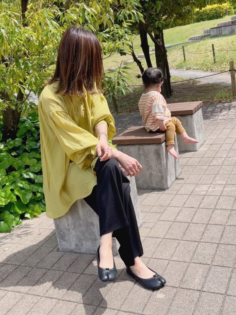 𝚜𝚊𝚢𝚊のシャツ/ブラウス「2021 SS シフォン楊柳バンドカラーシアーブラウス」を使ったコーディネート