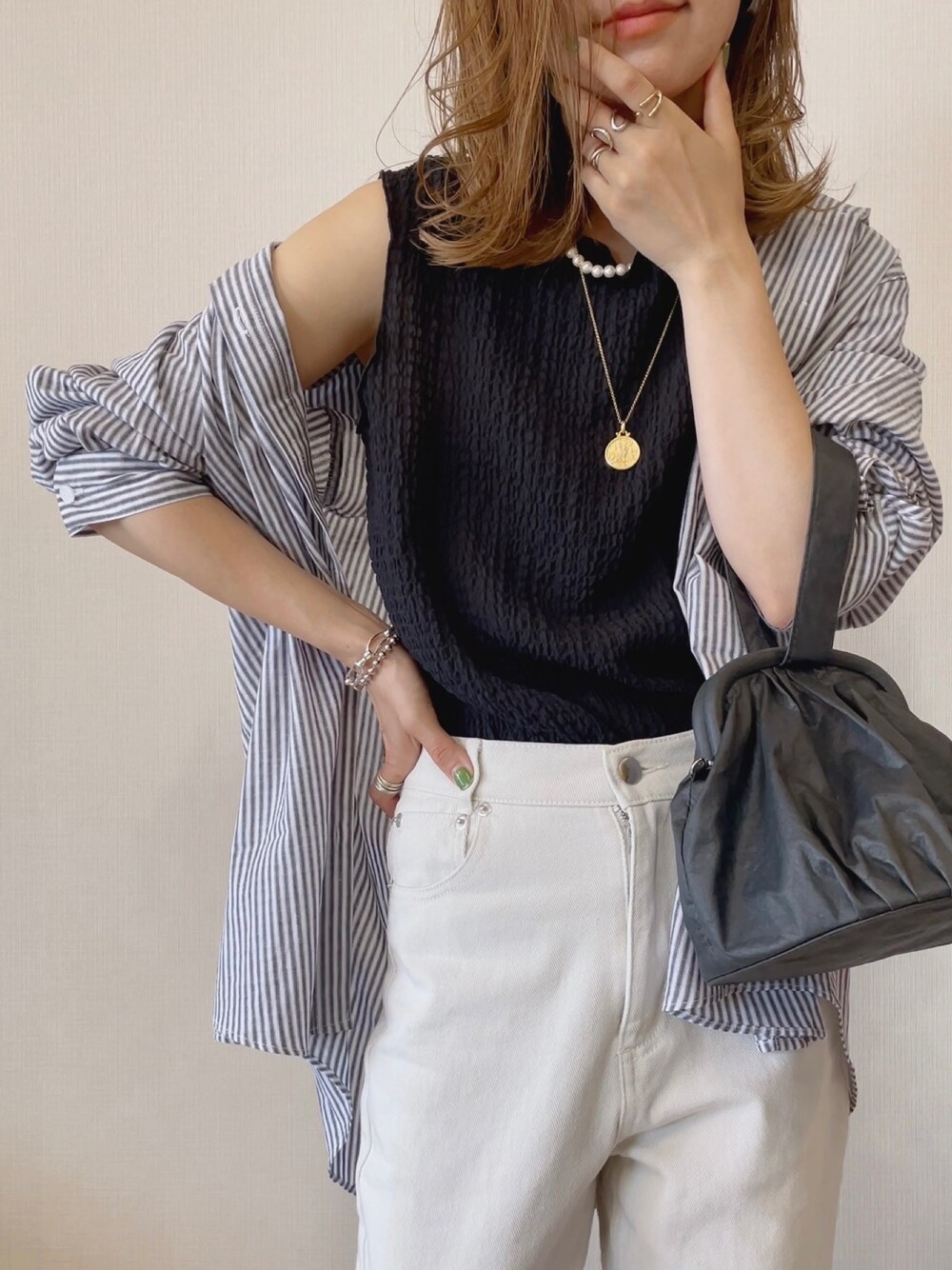 𝚜𝚊𝚢𝚊のシャツ/ブラウス「[justone] 2WAYストライプシャツ・p242829」を使ったコーディネート