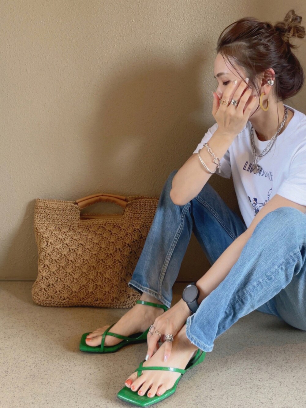 𝚜𝚊𝚢𝚊のサンダル「クロコ調フラットサンダル・全4色」を使ったコーディネート