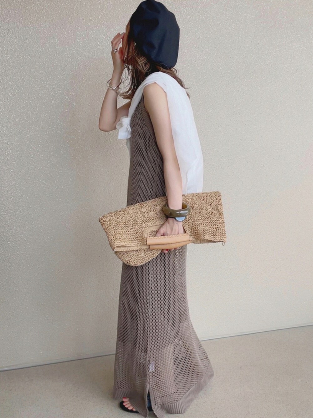 𝚜𝚊𝚢𝚊のワンピース「3WAYリサイクルフィッシュネットニットワンピース」を使ったコーディネート