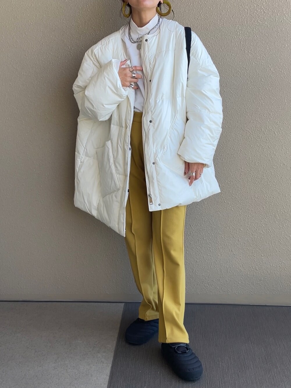 𝚜𝚊𝚢𝚊のダウンジャケット/コート「ノーカラーパッファーコート」を使ったコーディネート