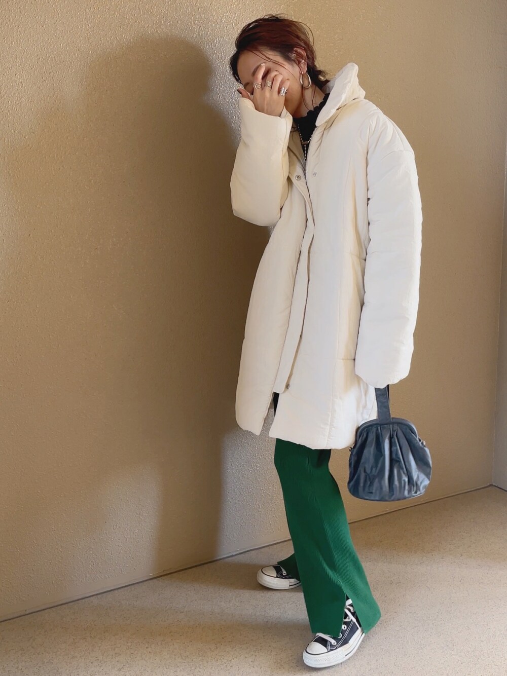 アウター襟ありver. パンツ合わせ🩳 【 FREAK'SSTORE】 リブフレアスリットニットパンツ 色味…どんぴしゃなグリーン🫑 楽ちんで良いです◎ 10カラーあります〜👏👏 ____✍︎ 覗いて下さってありがとうございました♡ インスタもよろしくお願いします·͜· ❤︎