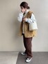 𝚜𝚊𝚢𝚊のノーカラージャケット「マットタフタ ボア切り替え M65 キルティングショートコート」を使ったコーディネート