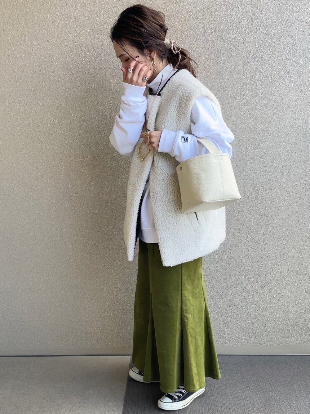 𝚜𝚊𝚢𝚊のスカート「【ZOZO限定色登場】マーメイドスカート ロング 足長効果 ハイウエスト」を使ったコーディネート