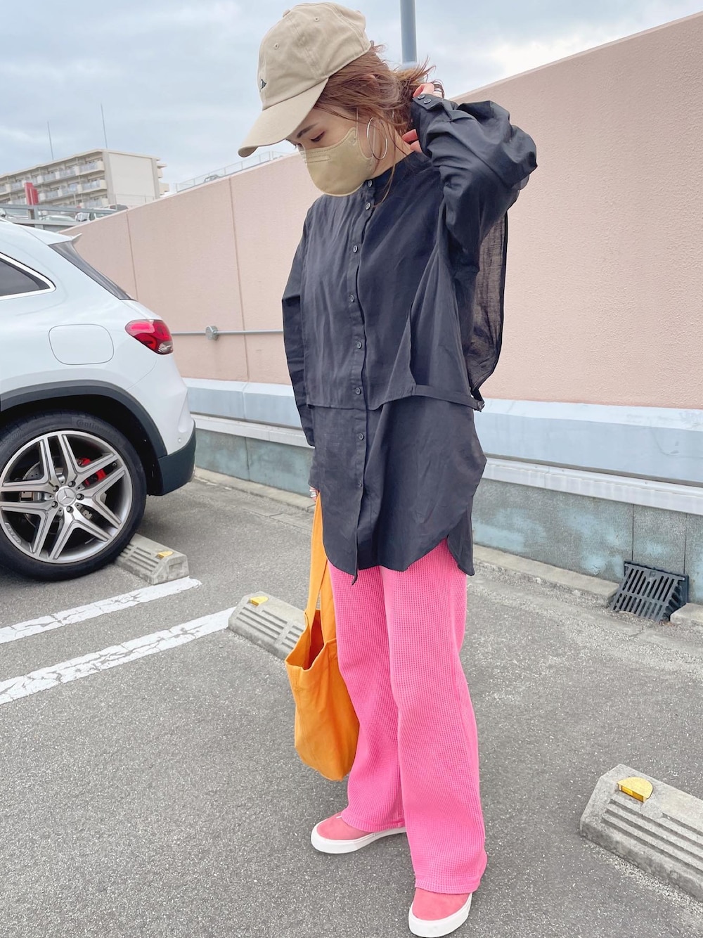 黒のシャツはカラーパンツ合わせがち🖤💖 【select MOCA】 シアーポプリンサイドレイヤードデザインシャツ 1枚で可愛いシャツ🖤🖤 春らしく、カラーパンツで、、 ____✍︎ 覗いて下さってありがとうございました♡ Instagram▶▶saya_e__wear