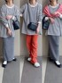 𝚜𝚊𝚢𝚊のTシャツ/カットソー「【お気に入り数11万人突破!】ゆったり体型カバー!ボーダー&無地オーバーサイズプルオーバー」を使ったコーディネート