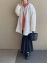 𝚜𝚊𝚢𝚊のノーカラージャケット「ボア×キルティングリバーシブルコート」を使ったコーディネート