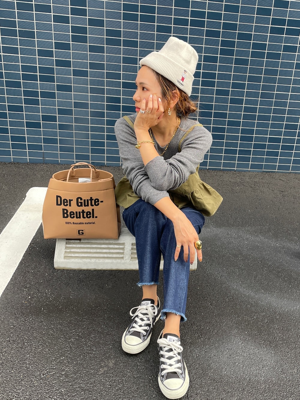 着用コーデ:17件𝚜𝚊𝚢𝚊のデニムパンツ「【XSサイズあり/セットアップ可】パッチ付きテーパードデニム」を使ったコーディネート