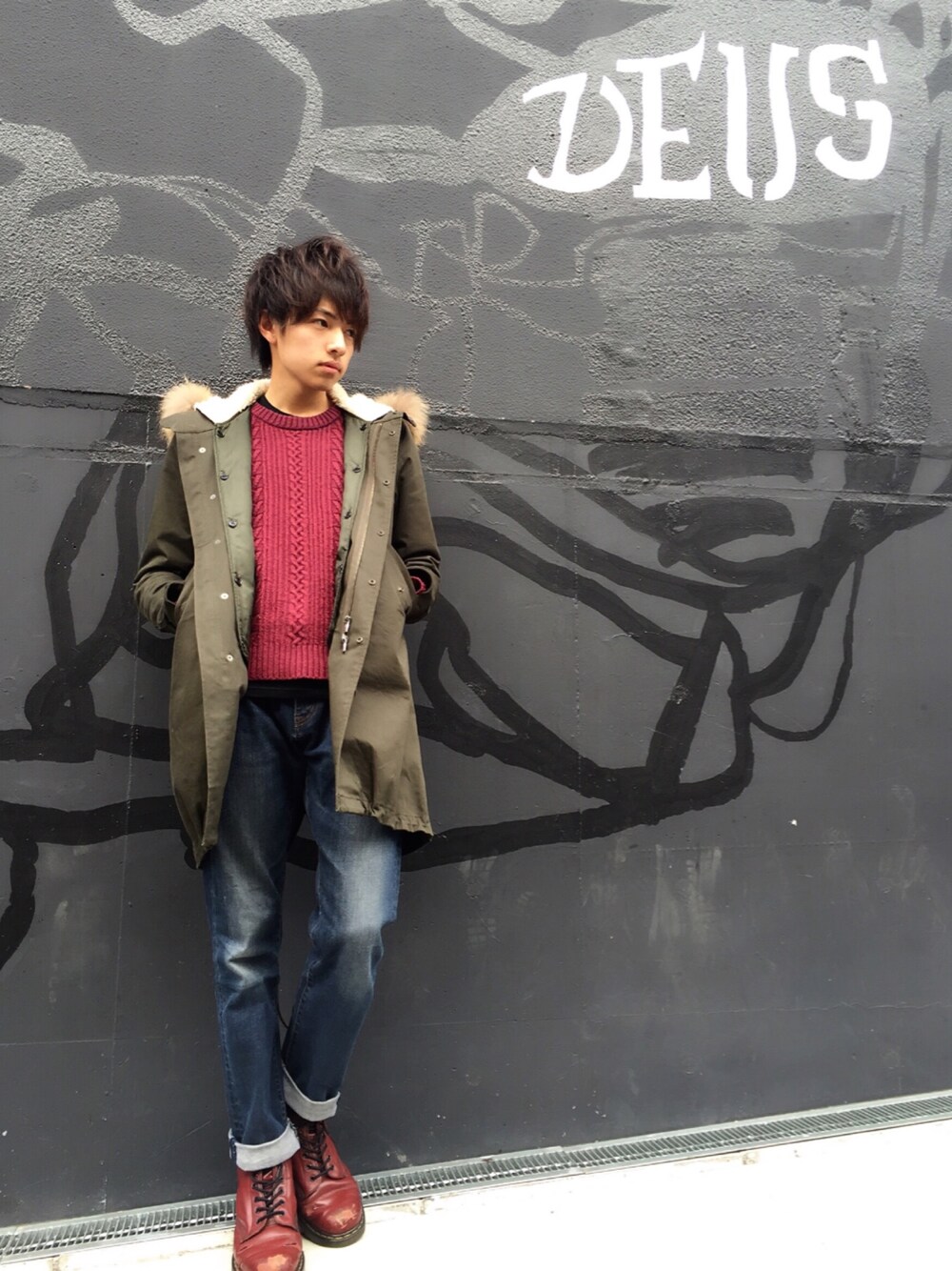 去年からお世話になっているSTUDIOUSのモッズコート。インナーと足元はボルドーで統一感をもたせました◎