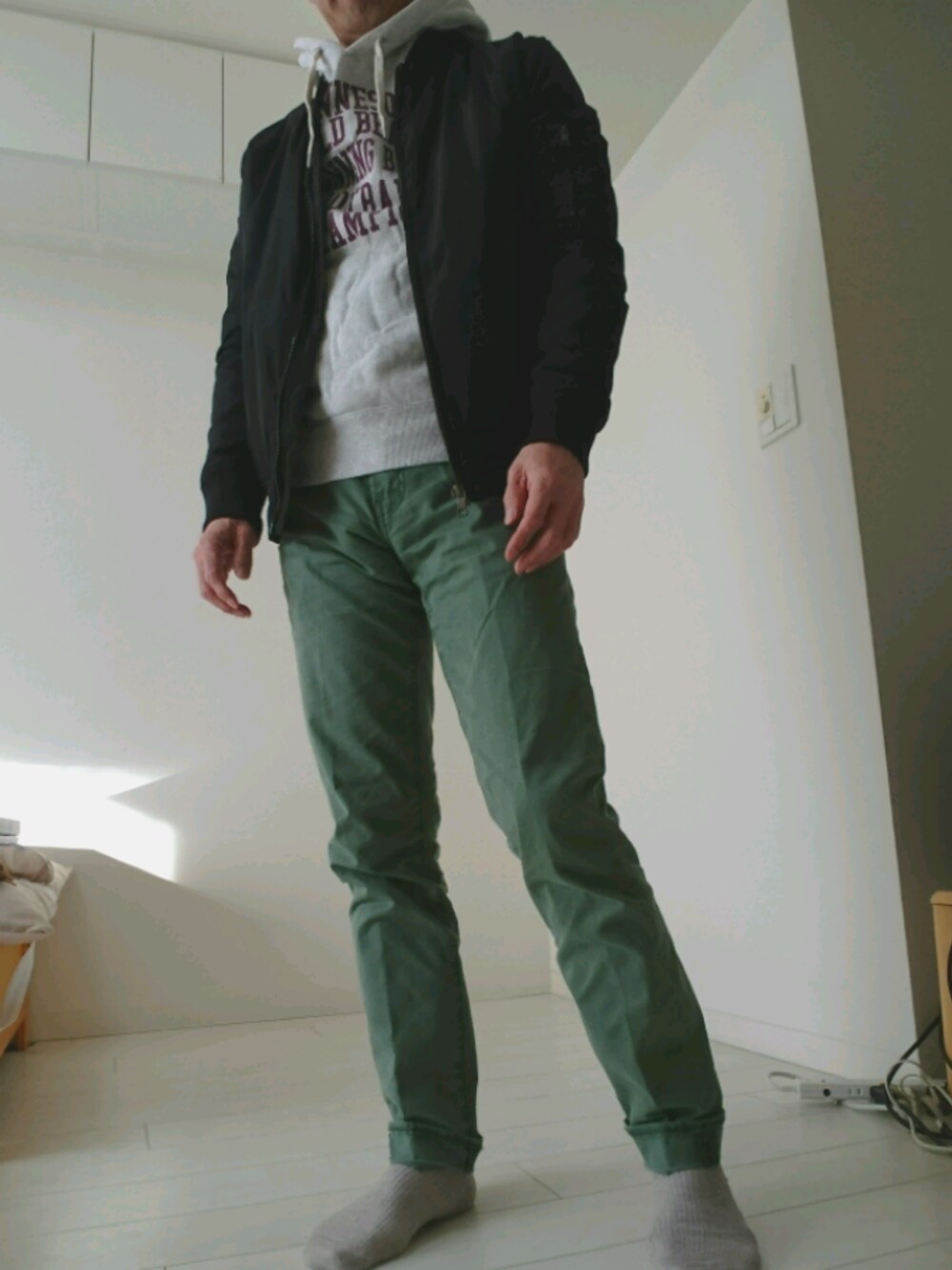 最近ニットを着る事が多いので、たまには気分を変えてプルオーバーのパーカーをチョイス。 それにMA-1のコーデは些か芸が無いかな(^^; championのスエットはシンプルですがやはりデザインは秀逸。 もっともっと欲しいブランドのひとつです。