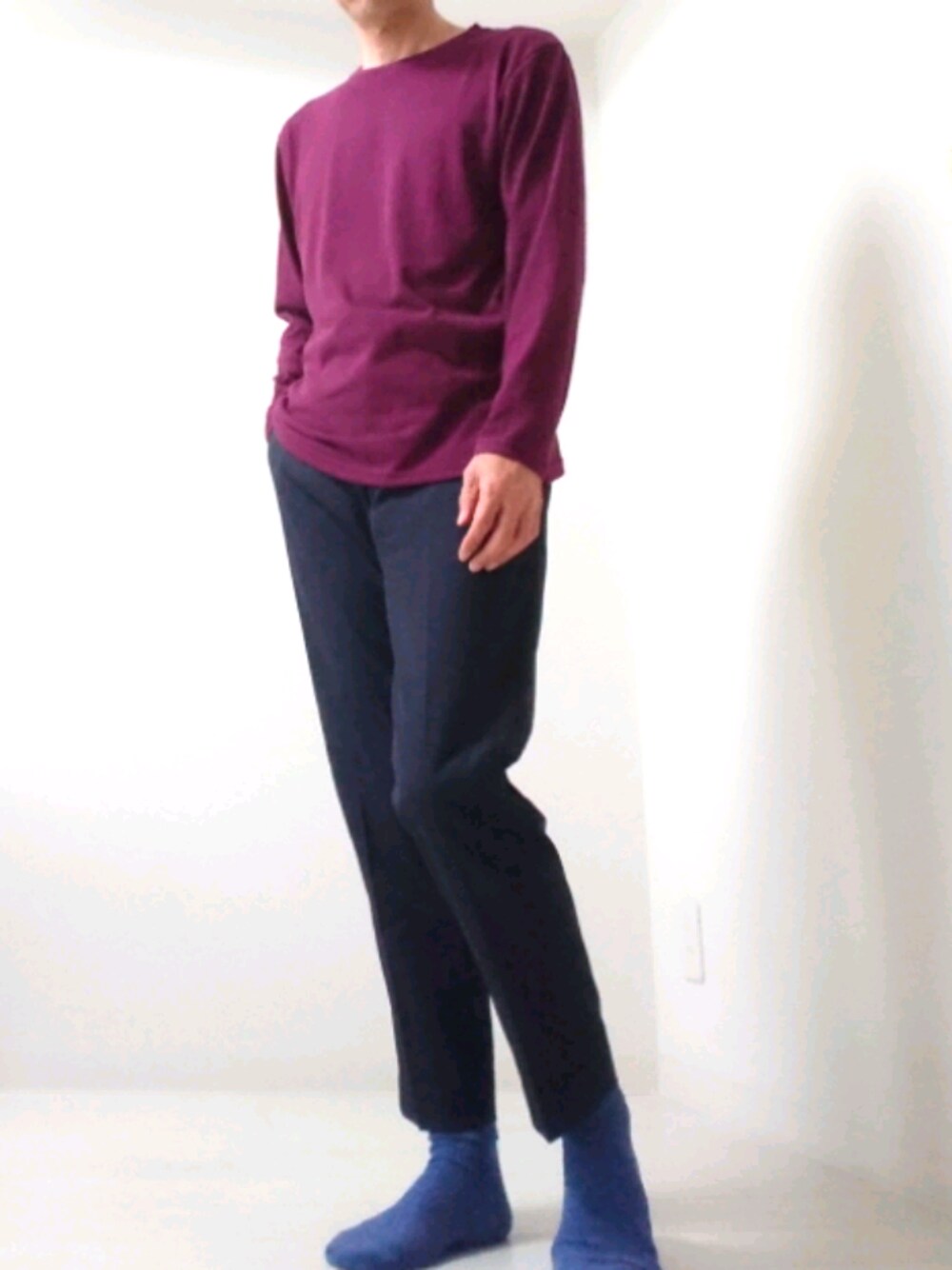 朝から雨模様。 でも気温は高めです。 そうは言ってももう9月も半ば。 秋色を着たくてボルドーのカットソーをチョイス。 ボトムはグレンチェックのイージパンツを合わせました。
