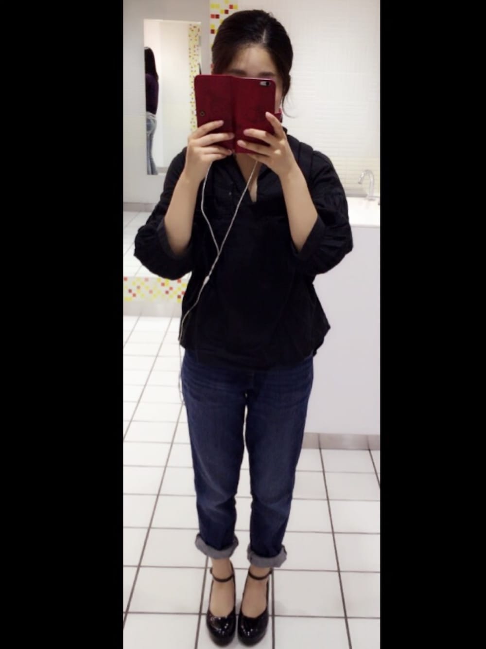 今日はブラック&ネイビーコーデ✨ パンプスはエナメルにしてラフだけどレディーに見えるように 笑😘 後は身長誤魔化し ((