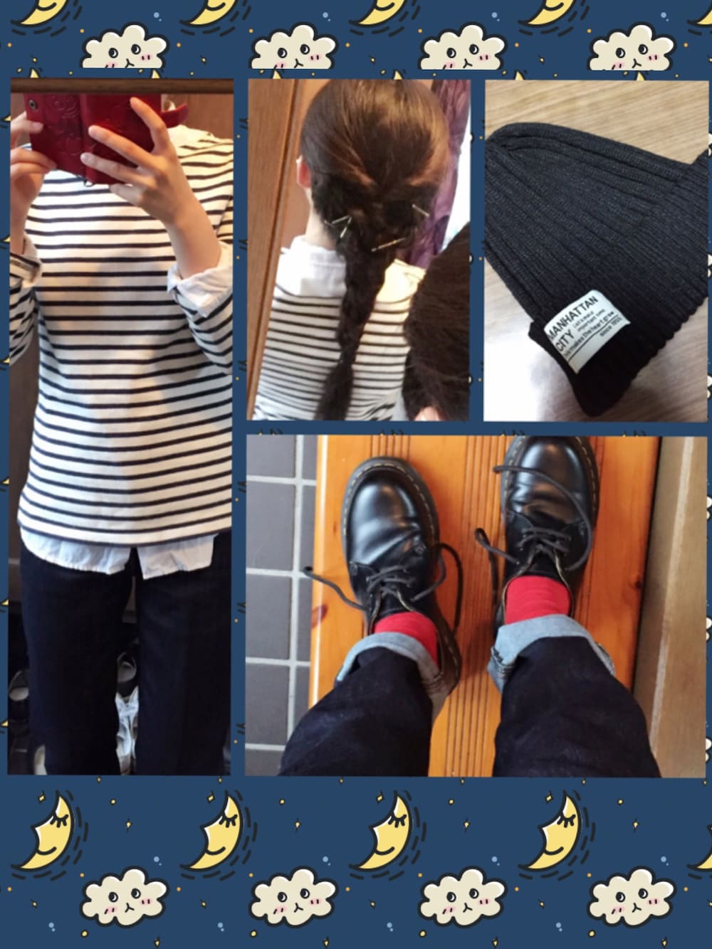 湿気が凄いのでくるりんぱ&三つ編みをさらに三つ編みで崩れ防止😉✨ リュックは写ってないけど黒のグレゴリー 今日は荷物が多かったんです、 ジーンズはロールアップして赤靴下を見せて、トーン⤴︎😘