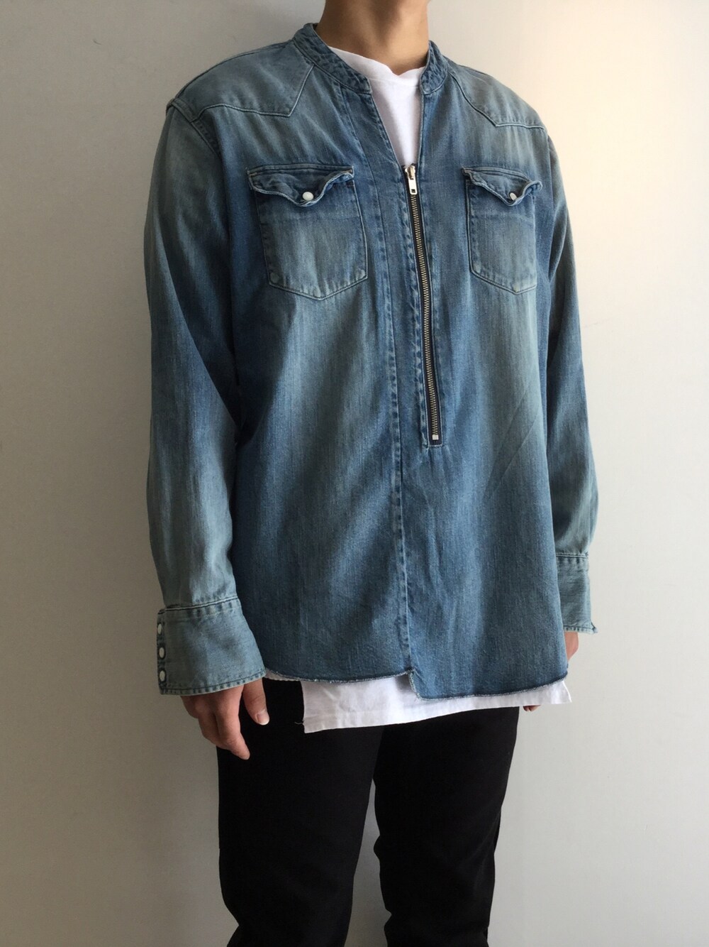 【UNUSED】 8oz denim pullover western shirt Indigo / Size:1 31,000yen+tax. 【UNUSED】 1 pocket T-shirt White / Size:1 12,000yen+tax.