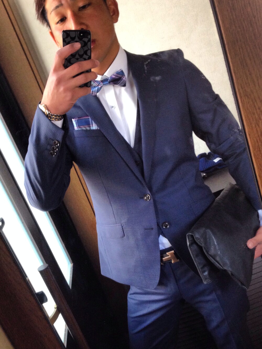 ベルト エルメス 時計 tissot1853 蝶ネクタイで遊んでみました。 クラッチバッグで入学式へ。