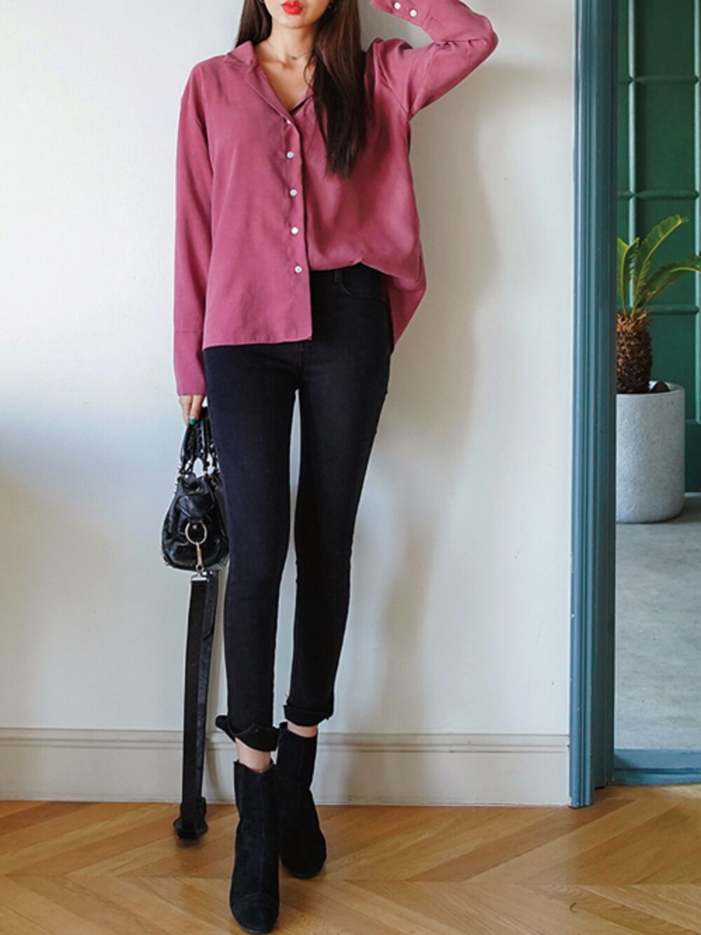 オータムオープンカラーブラウス ¥2470 シンプル&ベーシックなオープンカラーブラウス。 メンズでよくみられるタイプですが、カラーを細めにし、デコルテラインをすっきり見せる深いVネックラインにすることで、女性らしい華奢なイメージに仕上げてたデザインです。 ツーボタン仕様の長めなカフスデザインも特徴! シンプルなので、きちんとしたいシーンやオフィス、きれいめカジュアルなどに幅広く使えて、色んなコーデを楽しめます♪ ------------------------------------------------------- 裏ゴムスリットパンツ ¥3660 すっきりとスリムな美脚シルエットを作り出してくれるデニムパンツです♡ ややハイウエストデザインで脚長効果もGOOD◎ 裾両サイドのスリットディテールで他のデニムパンツと差をつけて、ポイントを添えつつより洗練された着こなしをアシストしてくれます。 ウエストが裏ゴム仕様なので、お洒落に楽な履き心地をキープしてくれるのも嬉しいところ! どんなトップスにも相性抜群なので、コーデの心配なく幅広く活躍します♪ http://envylook.jp