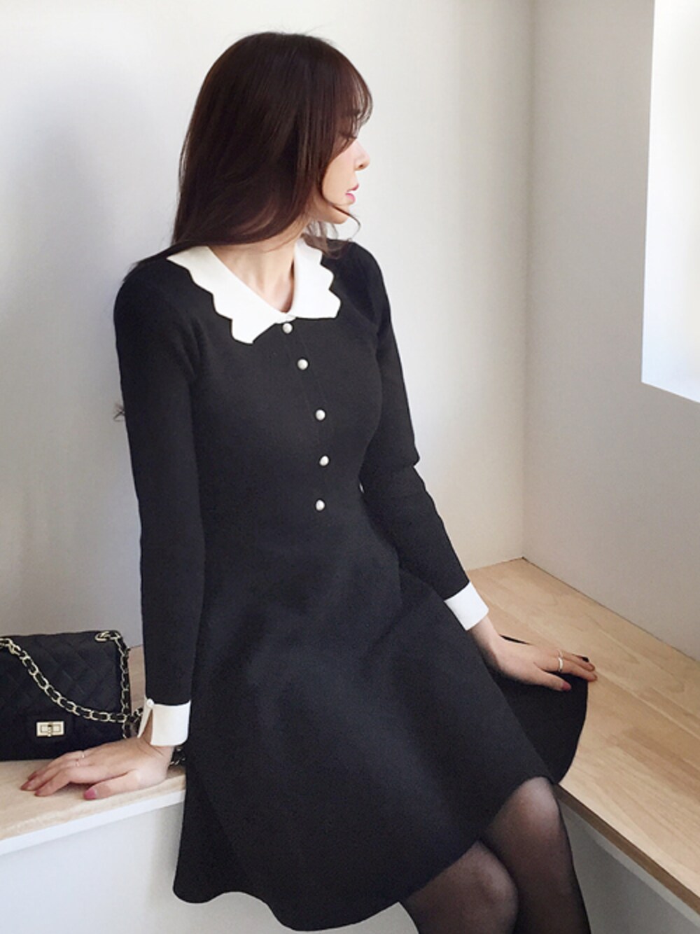 envylookのワンピース「配色ジグザグカラー付きパールポイントニットワンピース」を使ったコーディネート