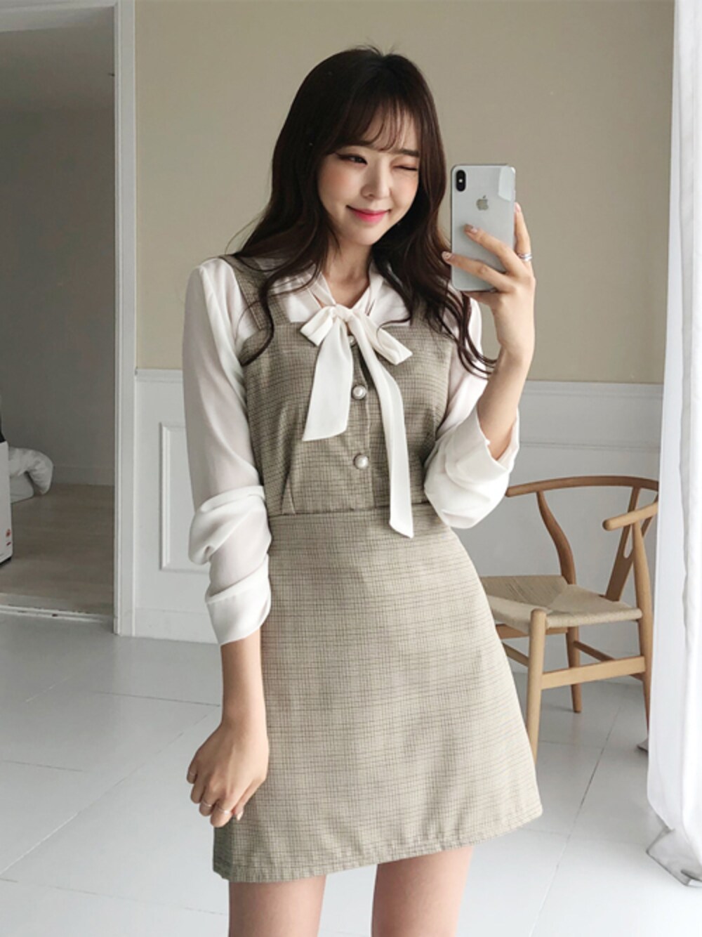 ボータイネックシフォンブラウス ¥2110 クラシカルなレディ感が漂うボータイネックブラウス★ Vネックにのタイデザインがフェミニンなアクセントになったデザインです。 軽やかなシフォン素材が女性らしさをより強調◎ 定番のアイボリーとベージュからコーデの主役になるインパクトのあるレッドまできれいめな大人スタイルにぴったりです。 シンプルなフォルムなのでヘビロテに確定♪ --------------------------------------------------- チェック柄パールボタンビスチェ+Aラインミニスカート ¥3190 細かいチェックパターンが大人っぽく洗練されたビスチェとミニスカートのセットアップが登場しました☆ ビスチェのフロントにはパールボタン仕様で、上品なデイストをプラス◎ シンプルなAラインシルエットのミニスカートはサイドジッパーとバックゴム仕様で楽ちんです。 インナーを変えることで違った雰囲気に演出できて嬉しい! コーデに心配なしのセットアップで、単品としても活用度の高くコーデが幅広くなります♪ http://www.envylook.jp