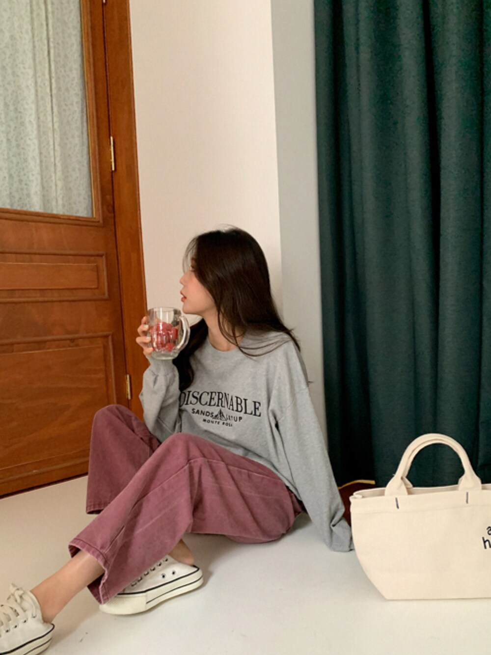 素敵なカラーパンツにロゴスウェットの組み合わせならぜったい失敗なし! 楽ちんながらもこなれ感あふれるカジュアルスタイルが完成◎