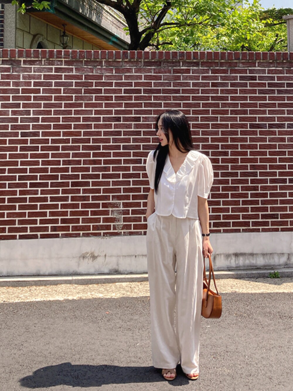 可愛いラッフルディテールのクロップド丈ブラウスは 可愛いだけでなく脚長効果も抜群◎ ワイドスラックスと合わせるだけでお洒落な大人コーデが完成♪ #envylook #envylook_japan