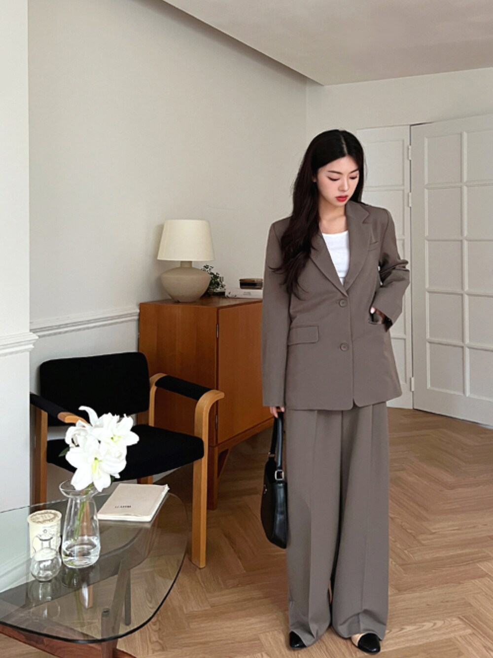 envylookのスーツセット「シングルテーラードジャケット+ロングワイドスラックス」を使ったコーディネート