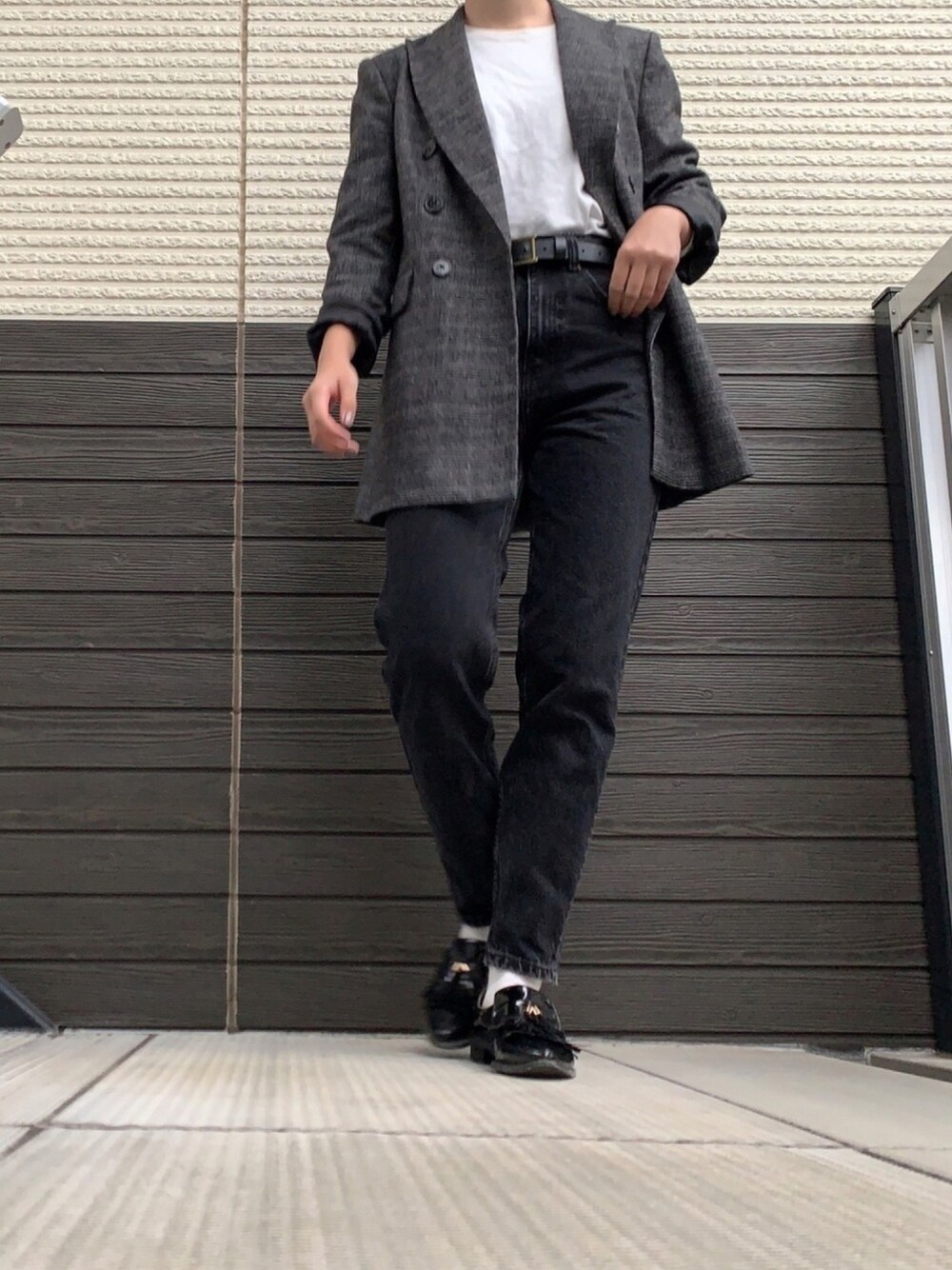 ZARAのテーパードデニム 形がめっちゃめっちゃキレイ!! ONでもOFFでも使える◎ ヴィンテージっぽい濃淡のある ブラックデニムが欲しくて、 やっと見つけたのでお気に入りです🕴