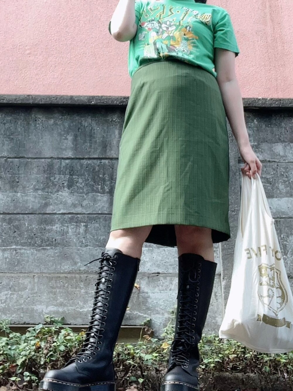30代にしてはじめてのロングブーツ ロングブーツの似合うおばぁちゃん目指して頑張る 洋服はお気に入りの古着屋にてゲット✨